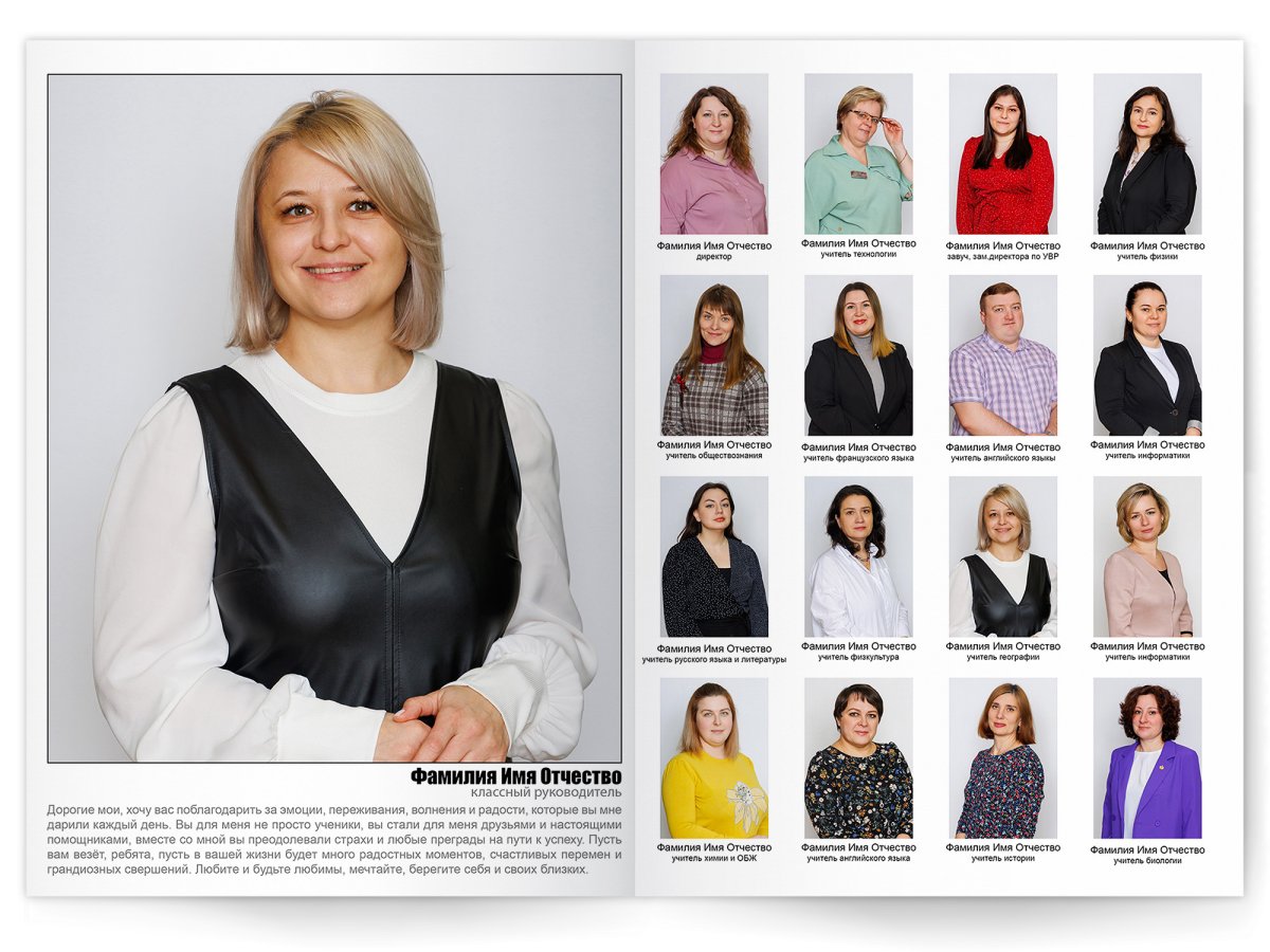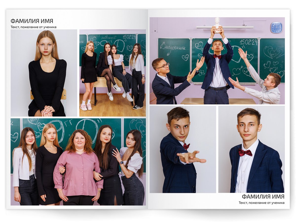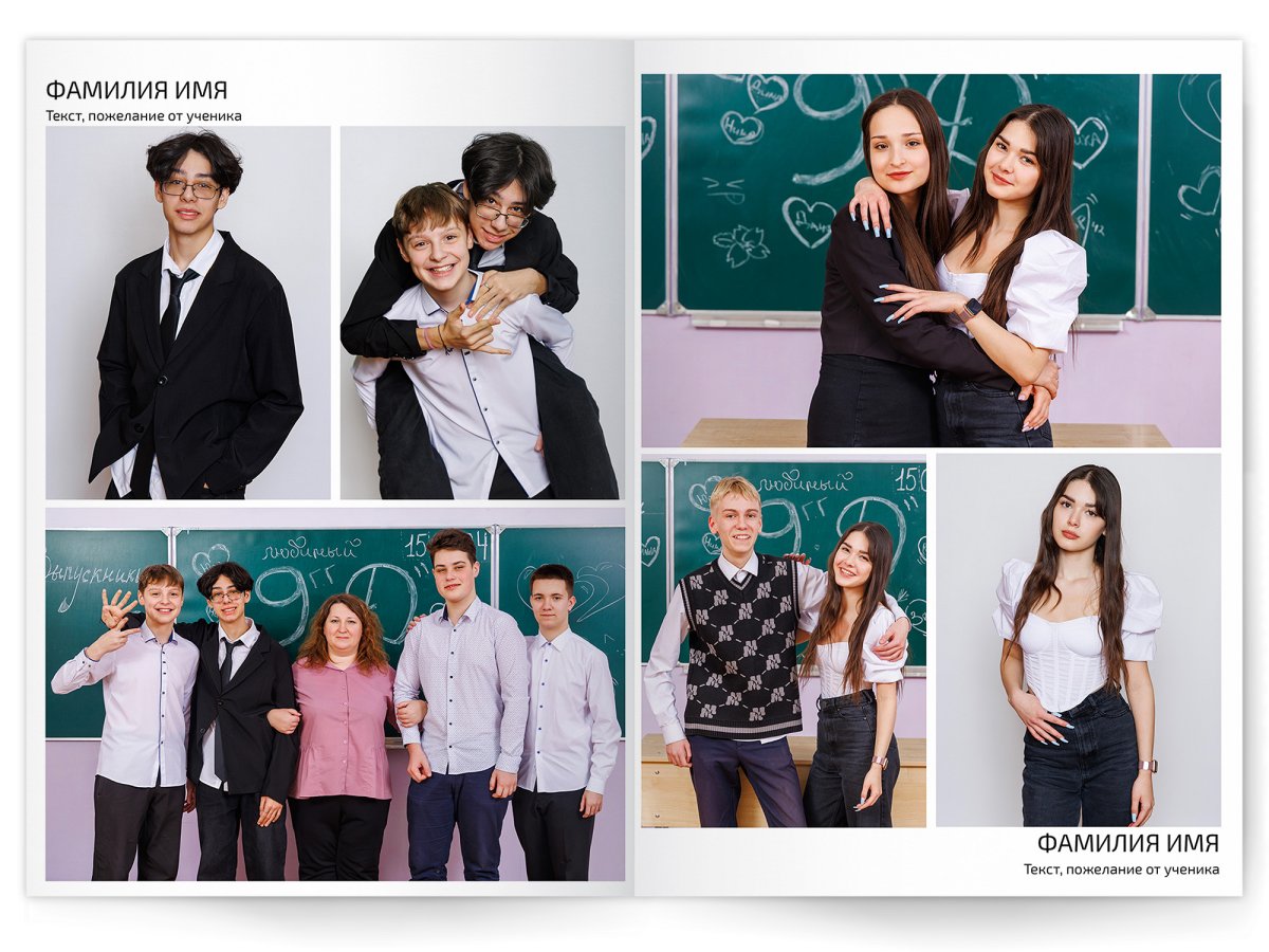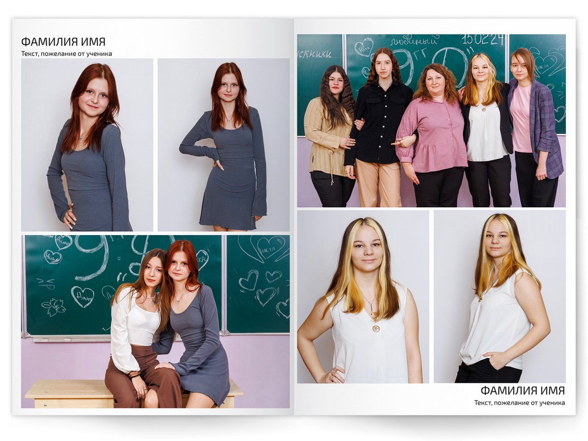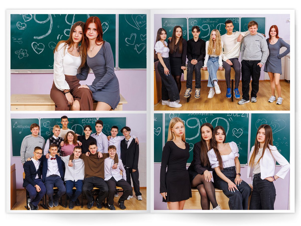 • Съёмка альбома в фотостудии от +750 ₽/человек (точная стоимость зависит от количества учеников и выбранной фотостудии)